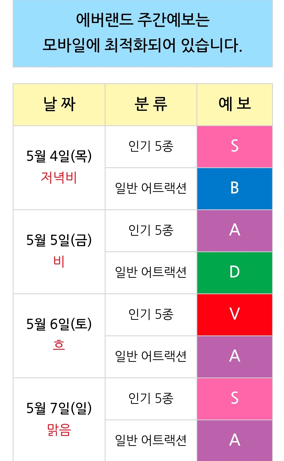 비가 오면 포시즌스 가든을 화창한 날씨와 함께 즐길 수 없어서 아쉽네요. 비 바람이 불지 않는다면 블로그 하단에 소개해 둔 페스티벌 트레인을 탑승해보세요. 포시즌스 가든 한 바퀴 쉽게 돌아볼 수 있습니다. 대기 줄 서는 곳도 건문 안이라 비를 피할 수 있습니다. 어린이날 에버랜드 비 소식으로 아쉬움이 가득하지만 방문 계획이 있으시다면 "꿈과 행복의 나라, 에버랜드"에서 즐거운 시간 보내시길 바래요.