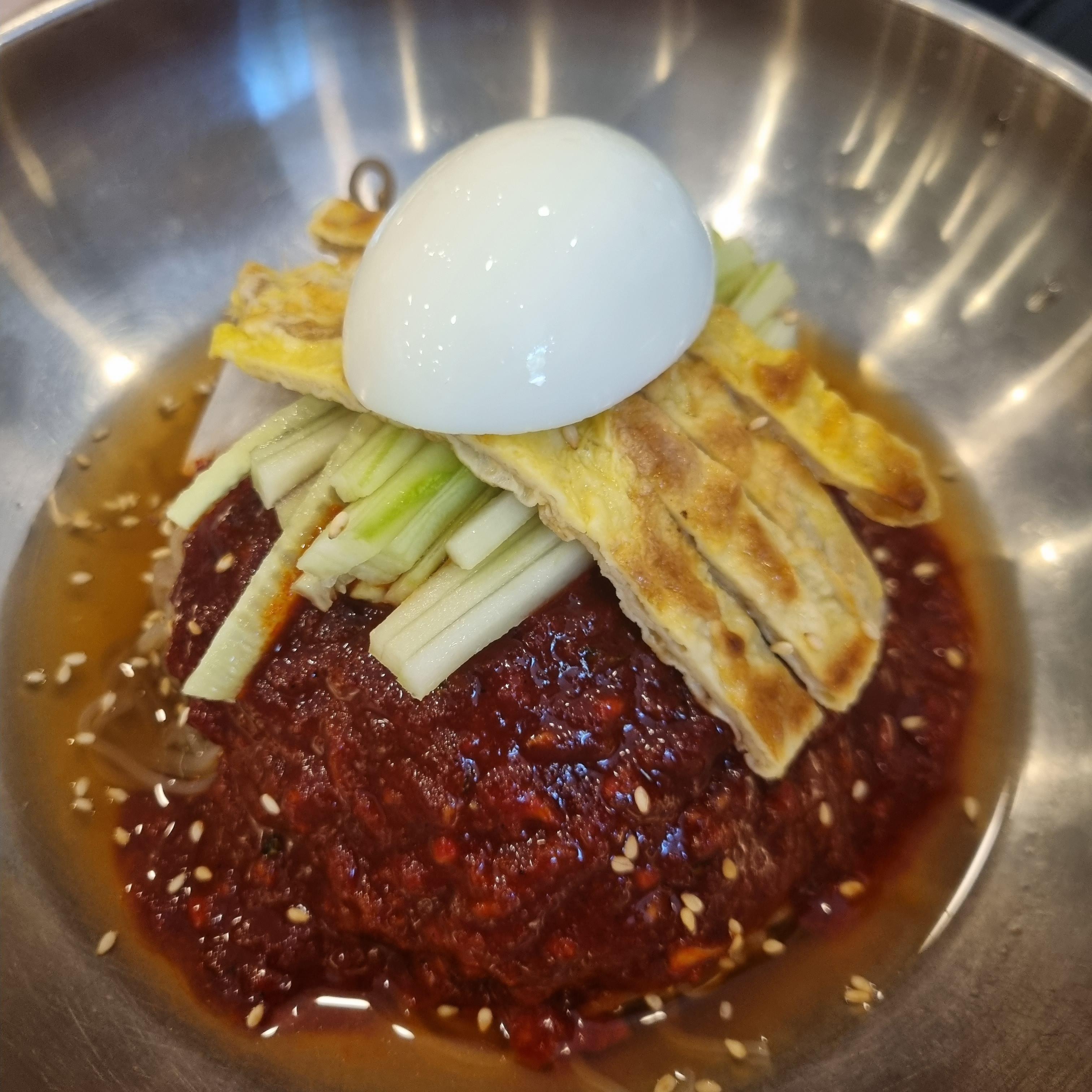 일행분들은 비빔밀면을 주문했습니다. 맛깔스럽게 보입니다. 주문하기 전에 저보고 약간 매운맛이라고 알려주셨습니다. 궁금했지만 맵찔이는 참아봅니다. 다음에 도전해 보겠습니다. 다들 비빔밀면 맛있게 드셨답니다.