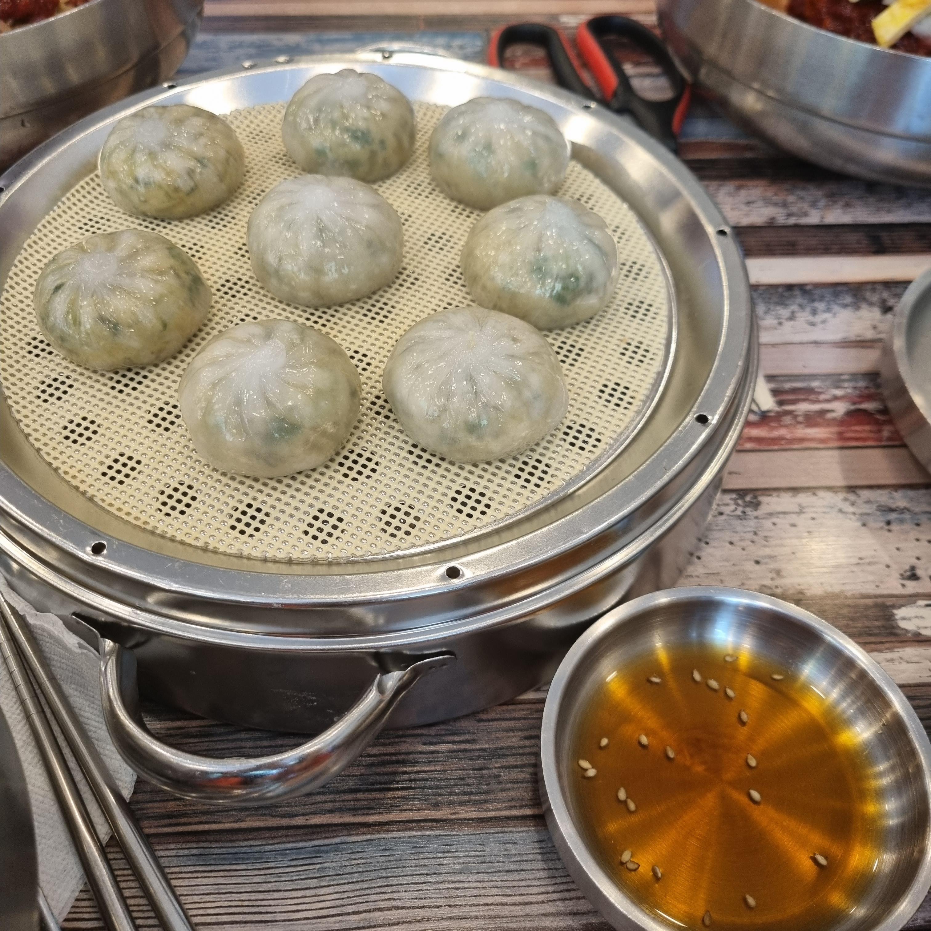 함께 나눠 먹은 고기만두입니다. 만두 한 판에 5천 원인데 만두는 8개 들어 있습니다. 4명이서 2개씩 먹으면 딱 맞아서 좋았습니다. 만두피는 쫄깃했고 만두소가 담백하니 맛있습니다. 간장도 함께 주셨지만 찍어먹지 않아도 간이 맞았습니다. 그런데 만두 사이즈가 기대보다 작았습니다. 정말 한 입 사이즈였습니다. 크기가 아쉬웠습니다.