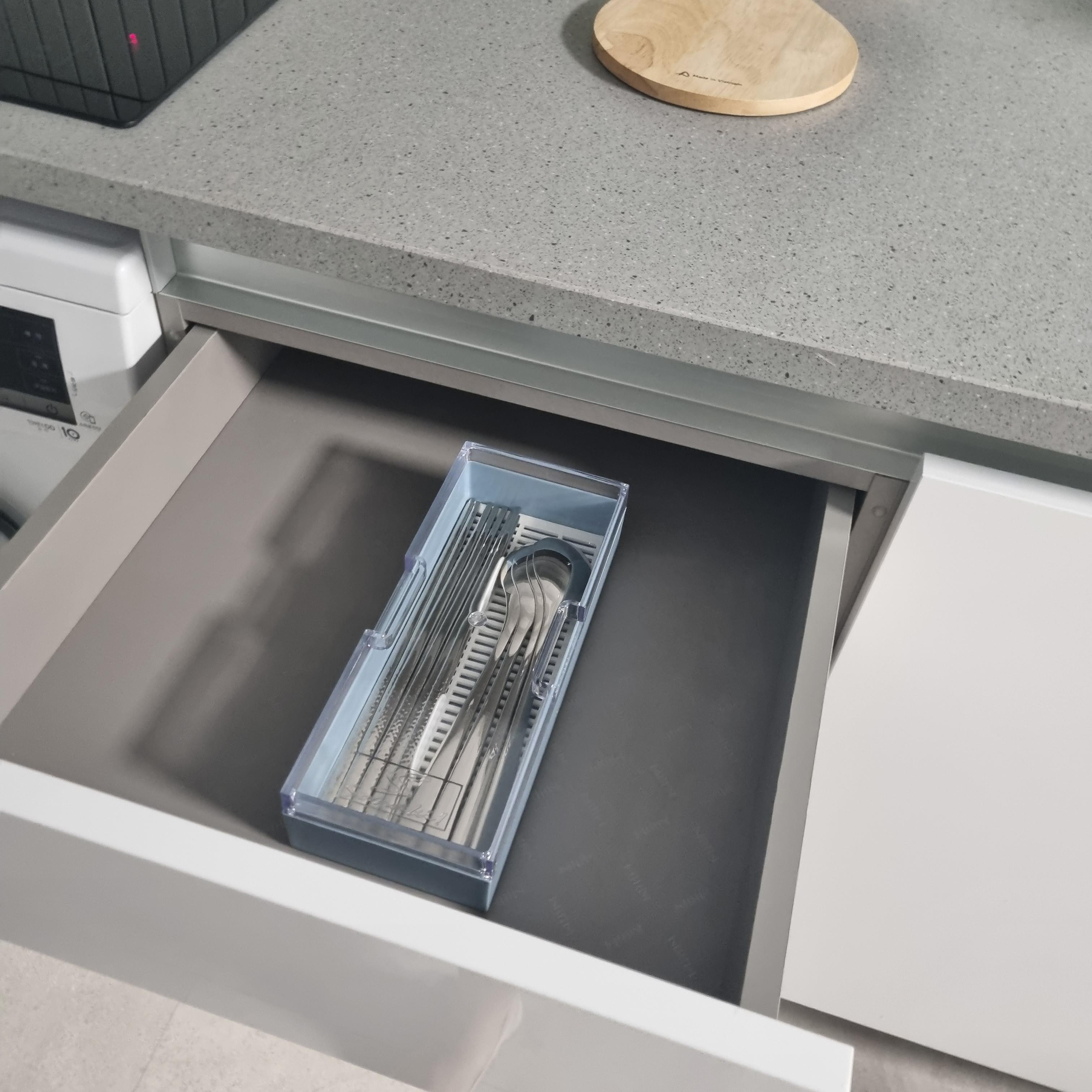 부엌에는 각종 전자기기가 비치되어 있습니다. 냉장고, 세탁기, 전자레인지, 밥솥, 전기포트. 모두 새 것으로 보입니다. 쓰레기통도 작은 것과 분리수거용으로 두 개 더 비치되어 있습니다. 그리고 식탁 맞은편에는 벽장이 있는데 옷걸이가 걸려 있는 옷장입니다. 여분의 요도 있고 드라이기와 멀티탭이 바구니에 담겨있습니다. 냉장고를 여니 2L짜리 생수가 한 병 있습니다. 생수가 반갑고 유용했습니다.