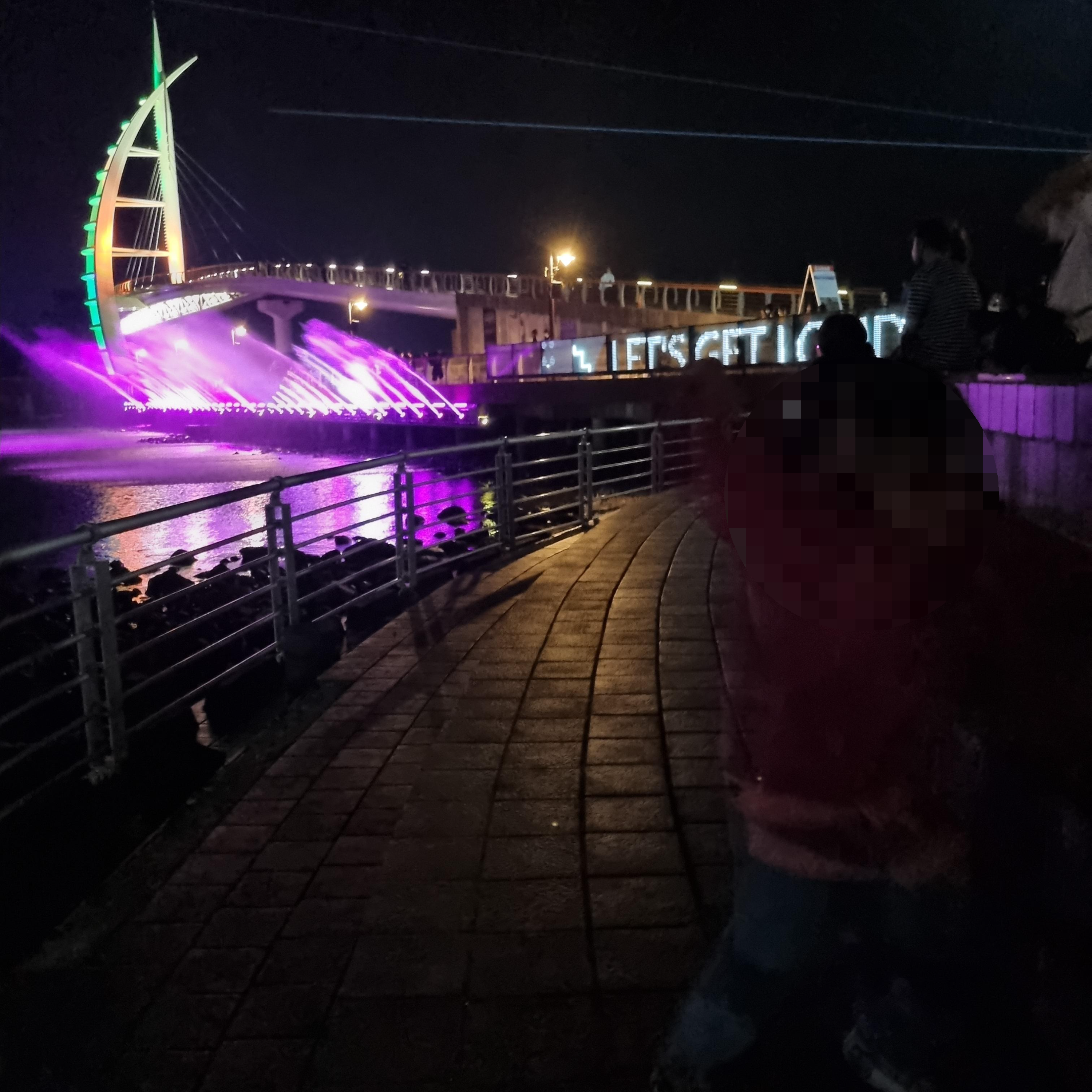 작년 가을 은갈치축제기간에 새연교를 방문했습니다. 당시에 야간에 20분간 음악분수가 운영되고 있었습니다. 신나는 음악과 함께 조명이 즐거운 분위기를 만들었습니다. 신난 꼬마는 흥에 겨워 춤을 추기도 했습니다. 바라보는 이들도 덩달아 신났답니다.