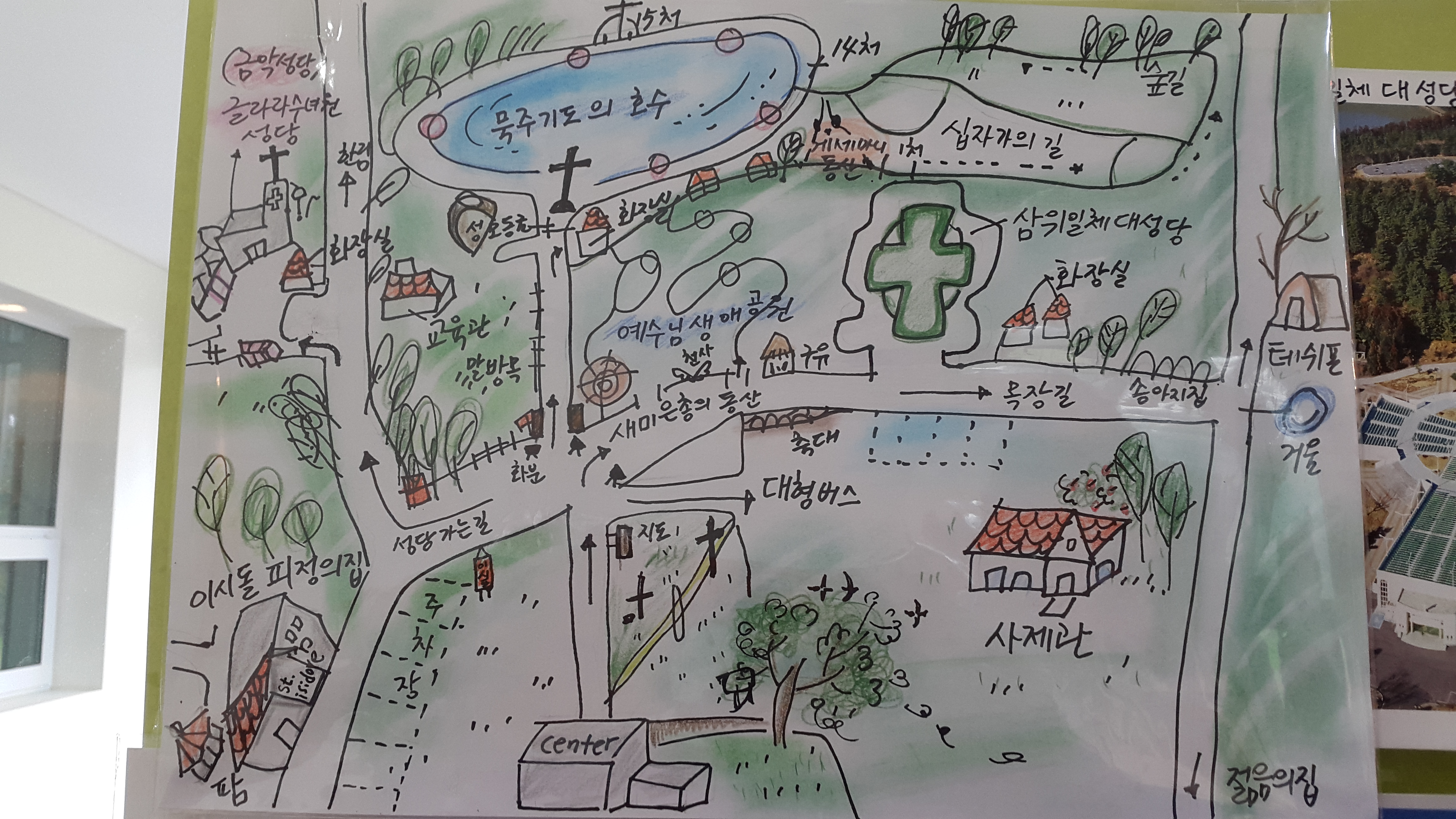 산책로에는 예수님 탄생부터 최후의 만찬까지 12개의 주요 사건을 표현한 조형물이 있습니다. 삼위일체 대성당도 있어 천주교 순례 장소이기도 하답니다. 저는 이미지 속에 소개된 거의 모든 곳을 돌아보았던 것 같습니다. 새미은총의 동산뿐 아니라 십자가의 길, 묵주모양의 호수가 있는 묵주기도의 호수도요.