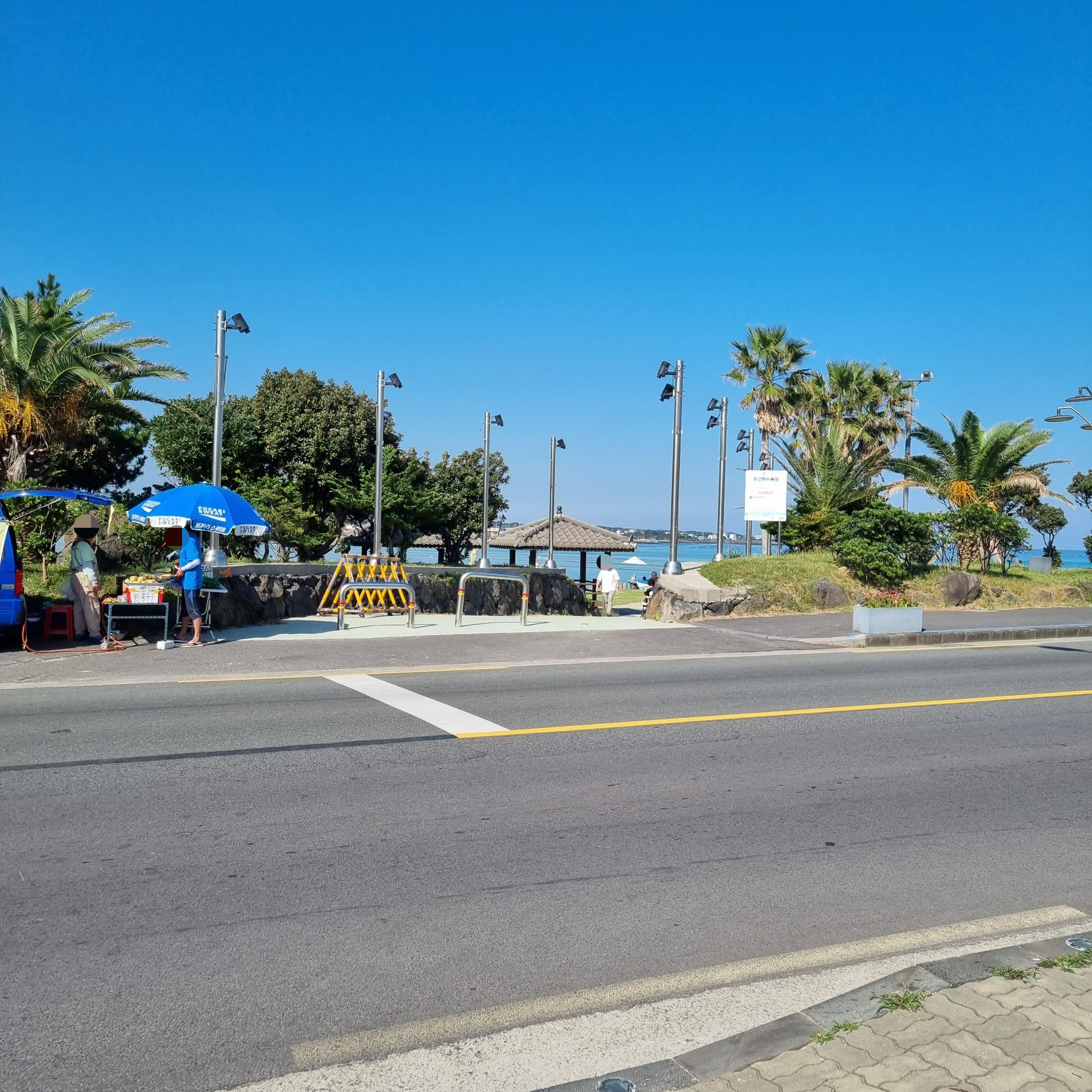 표선해수욕장과 맞닿은 표선해수욕장 캠핑장 건너편에 표선면 주차장이 있습니다. 주차가능대수는 70대, 대형 15대라고 합니다. 주차 초보인 제가 느끼기에 주차장은 꽤 넓었습니다. 성수기인 여름이 아니라서 그런지 주차도 쉬웠답니다. 주차 후 좁은 도로만 건너면 금방 해수욕장으로 이어지기 때문에 편하게 느껴졌습니다.