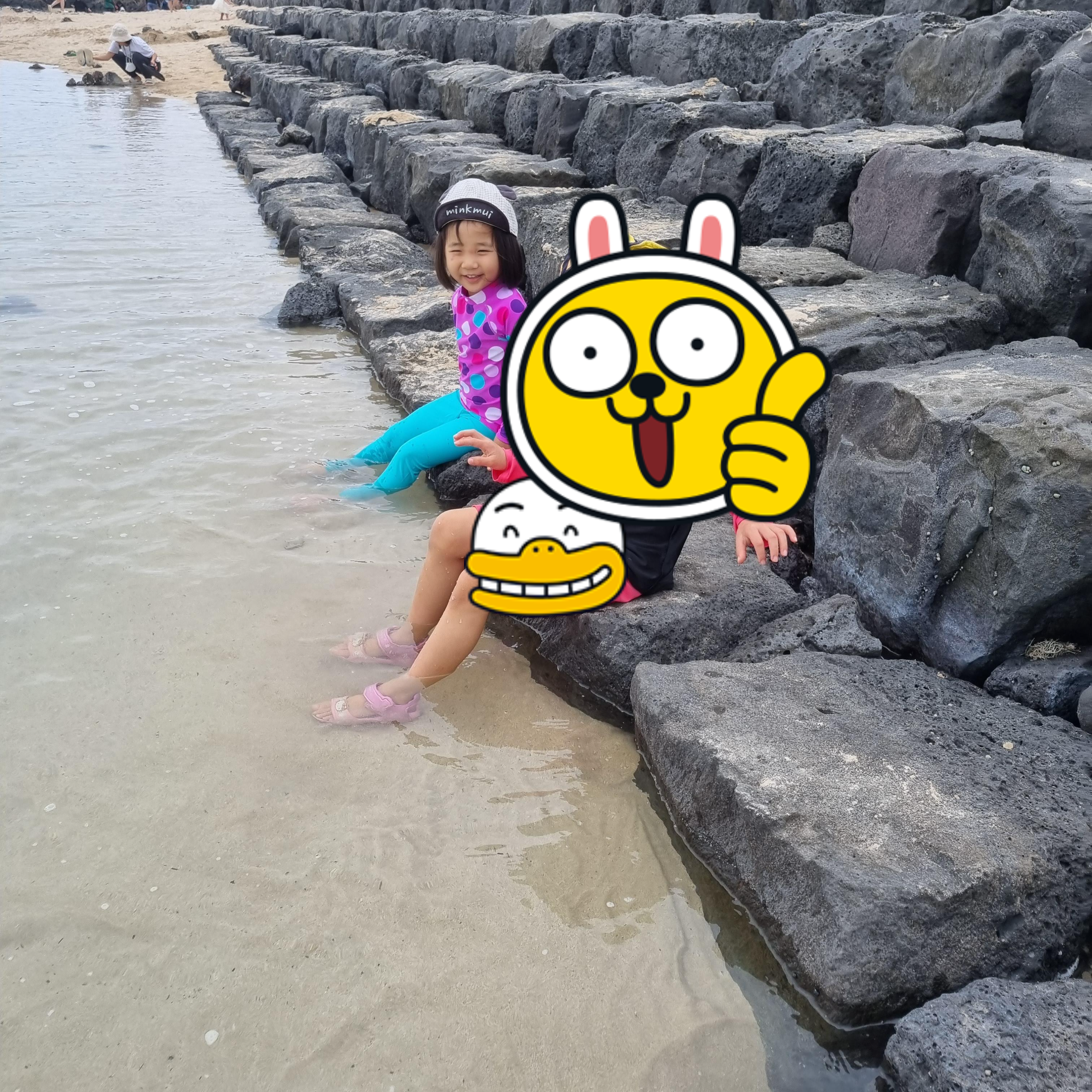 아이에게 해수욕장은 살아있는 교과서였습니다. 서해 갯벌에서도 움직이는 생물을 발견하면 무척 즐거워하던 아이였는데, 이번에도 마찬가지였습니다. 백사장 사이에 모습을 드러낸 까만 현무암에서 기어가는 소라게, 움직이는 고둥을 발견하였습니다. 친구 없이 혼자서 바닷물에 발만 담그고 놀다가 까만 바위틈에서 움직이는 바다생물을 발견하니 재미있나 봅니다. 덕분에 한동안 돌 틈 사이로 움직이는 친구들만 찾아다녔습니다.