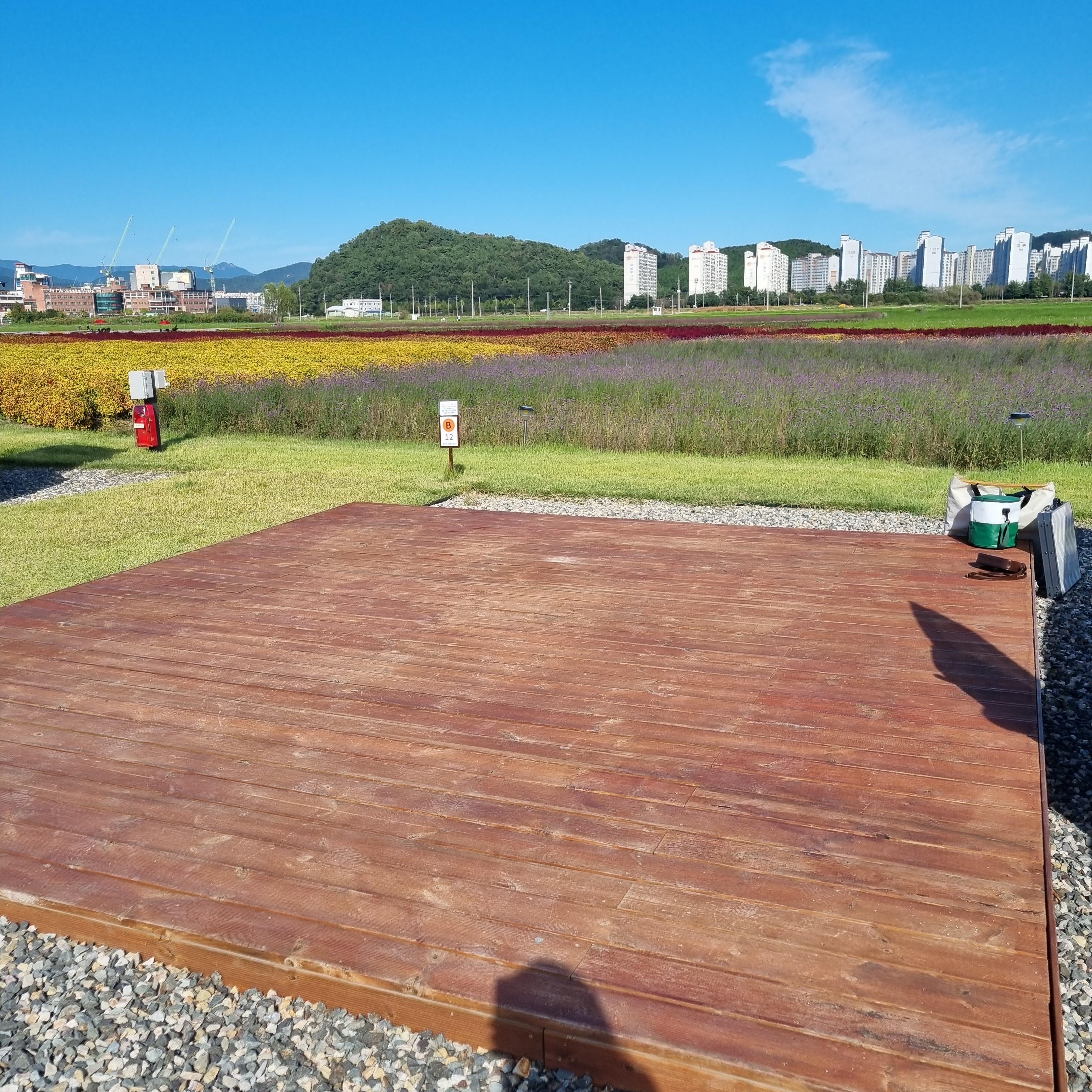 입구에 가까운 곳에서 사진부터 찍어봅니다. 이곳은 파쇄석이 잘 깔려있었고 각 경계는 잔디를 보고 구분 지어 두어 편해 보였습니다.
