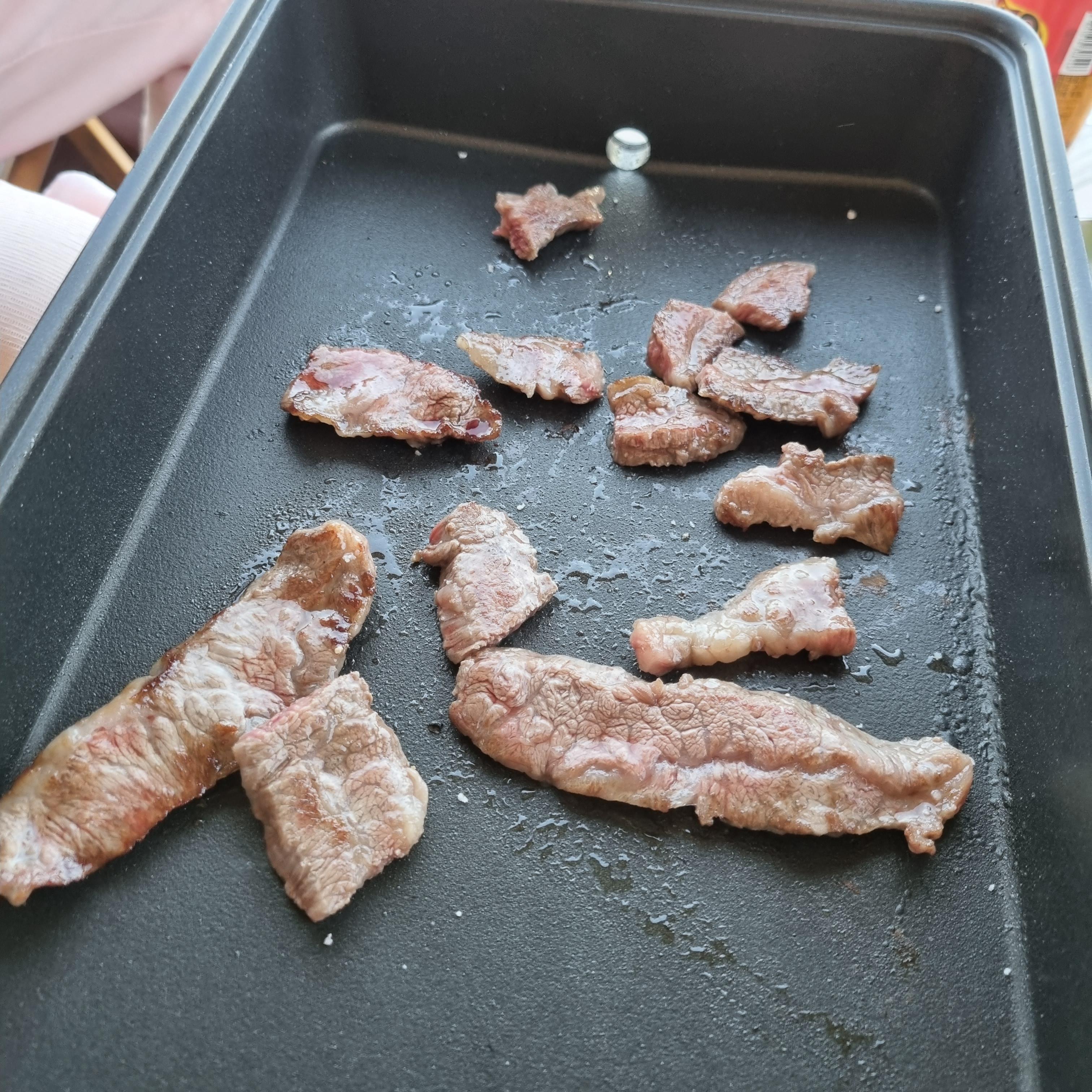 가볍게 소고기로 시작했습니다. 아이들부터 먹였지요.
