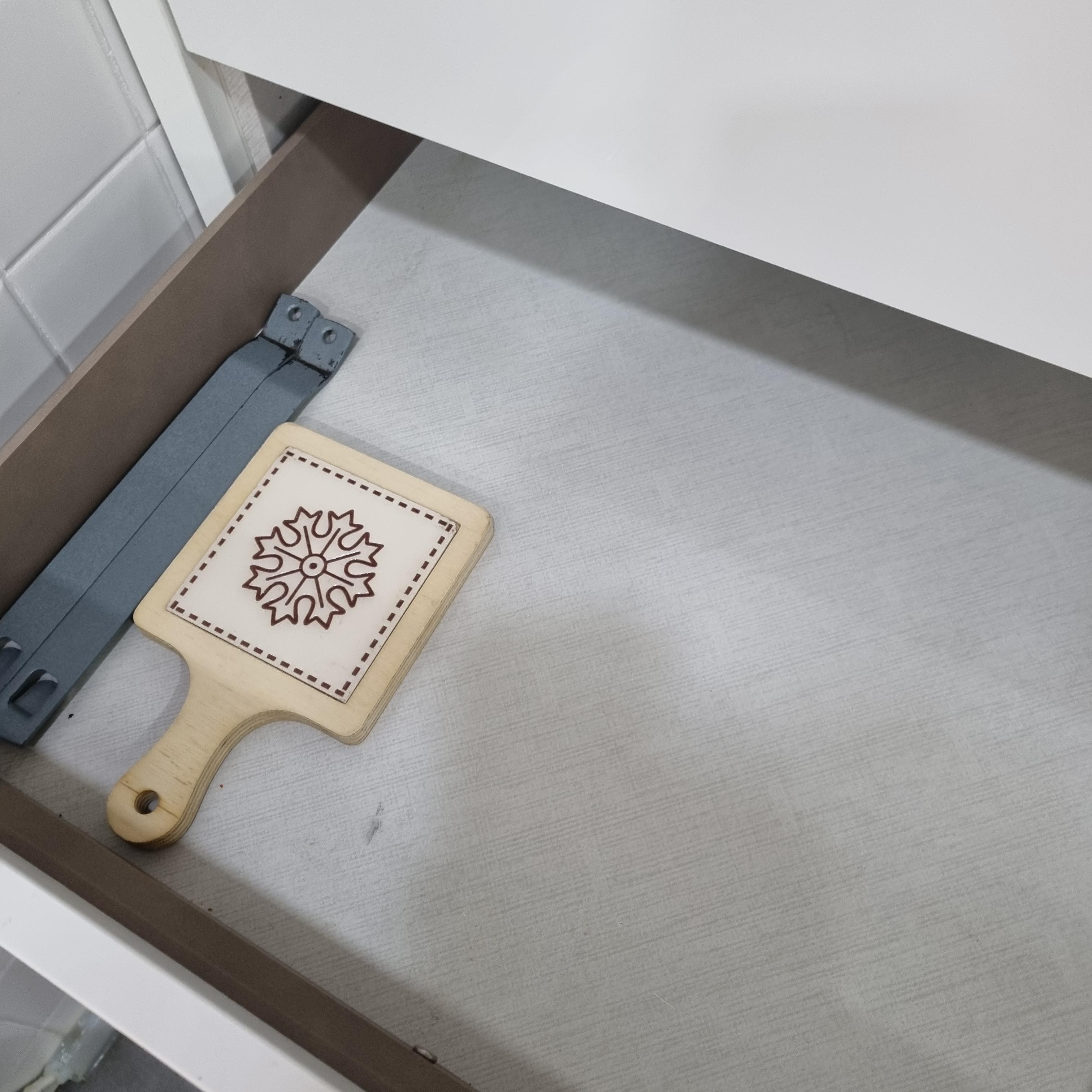 싱크대 안에 뭐가 있는지 자세히 찍어보았습니다. 아이들 젓가락과 수저도 있었지만 저희는 인원이 많아 어린이집에 들고 다니던 식판과 수저를 챙겨갔었습니다. 각자 자기 것을 사용했지요. 냄비 받침대도 보이고 여러 형태의 그릇이 있습니다.