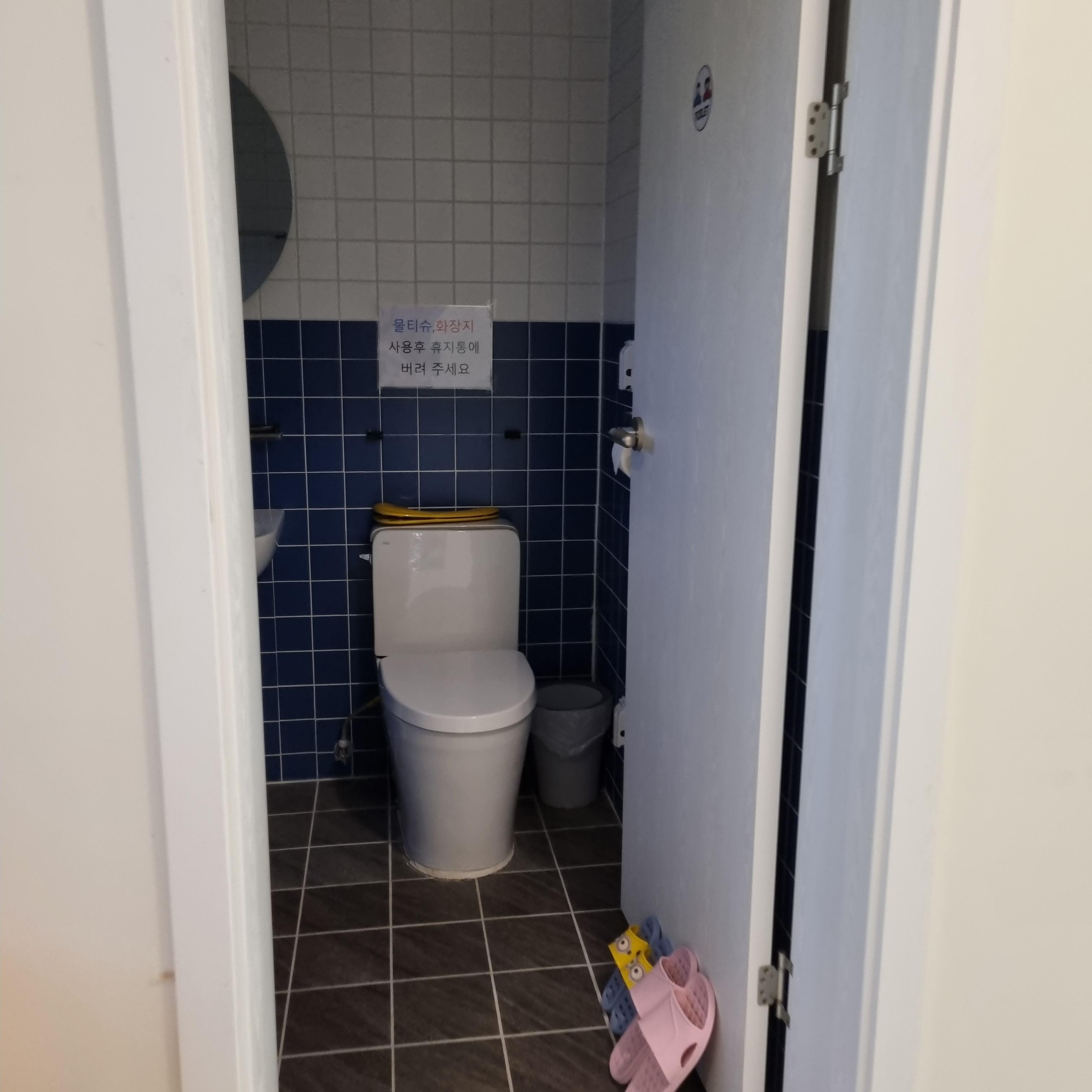 화장실 세면대 앞에 발 디딤대와 같은 것이 있었으면 좋았을 것 같습니다. 저희 아이들 키에는 조금 불편했습니다. 저는 집에서 들고 간 디딤대가 있어서 이걸 사용해서 불편함을 덜었습니다.