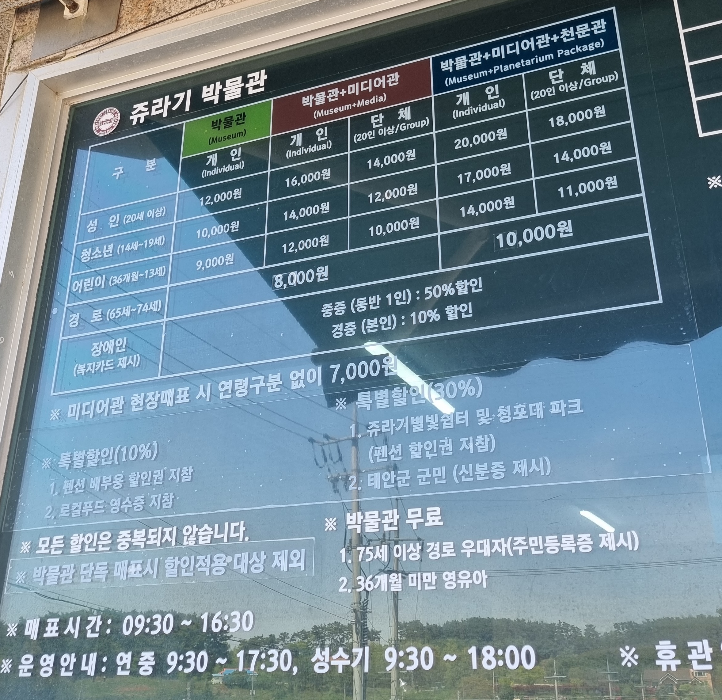 박물관 개인 입장료 : 성인 12,000원, 청소년 10,000원, 어린이 9,000원, 경로 8,000원