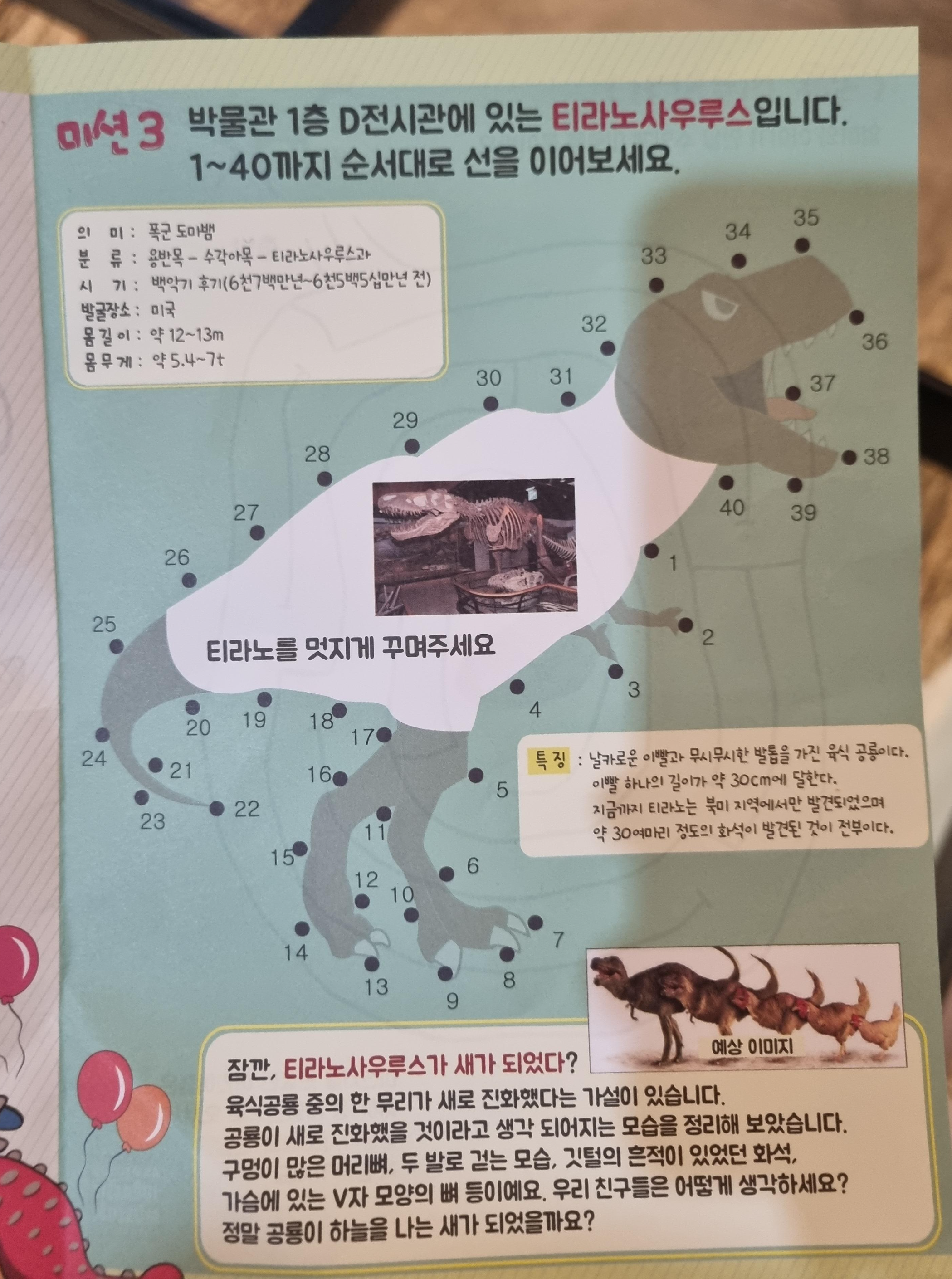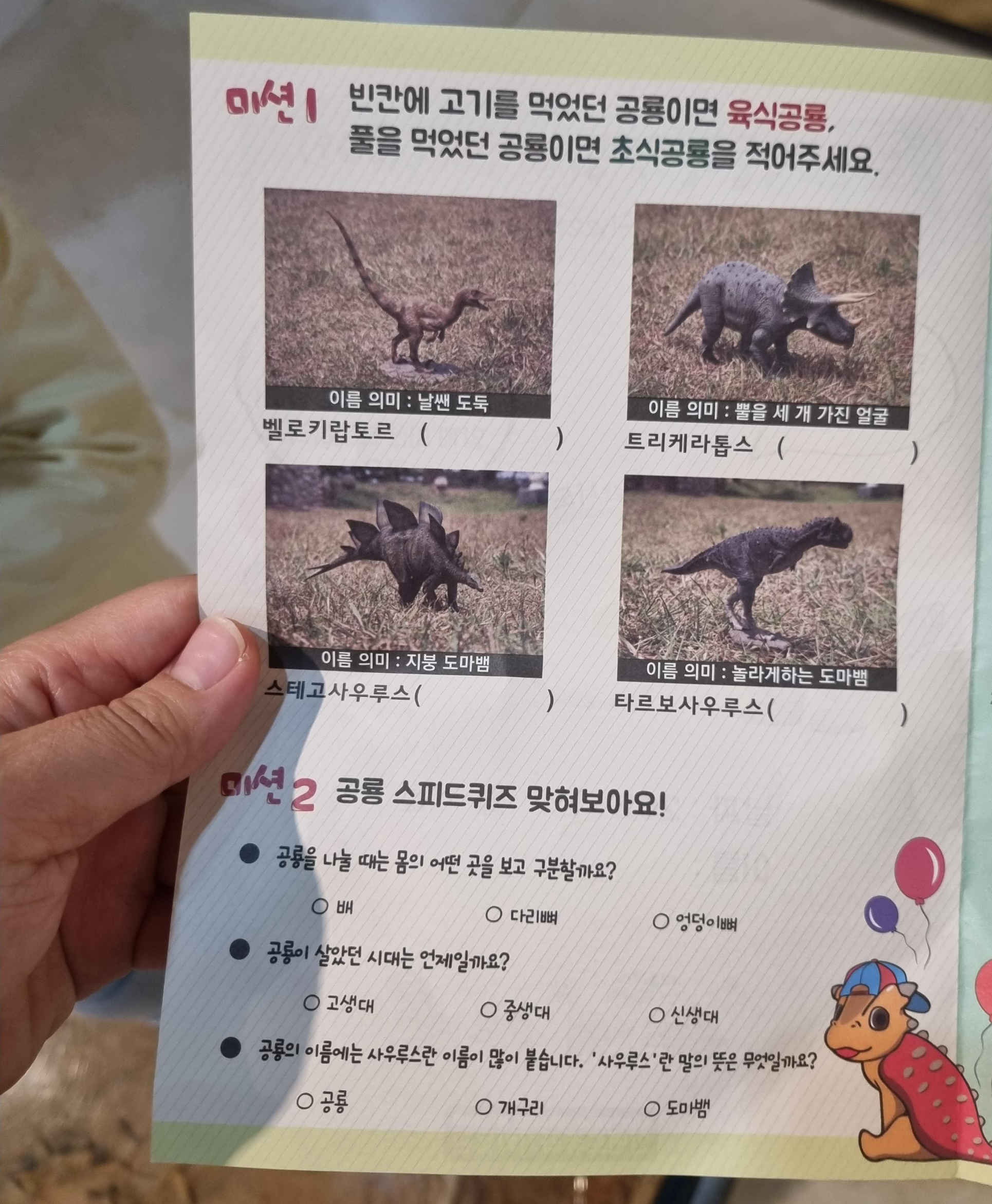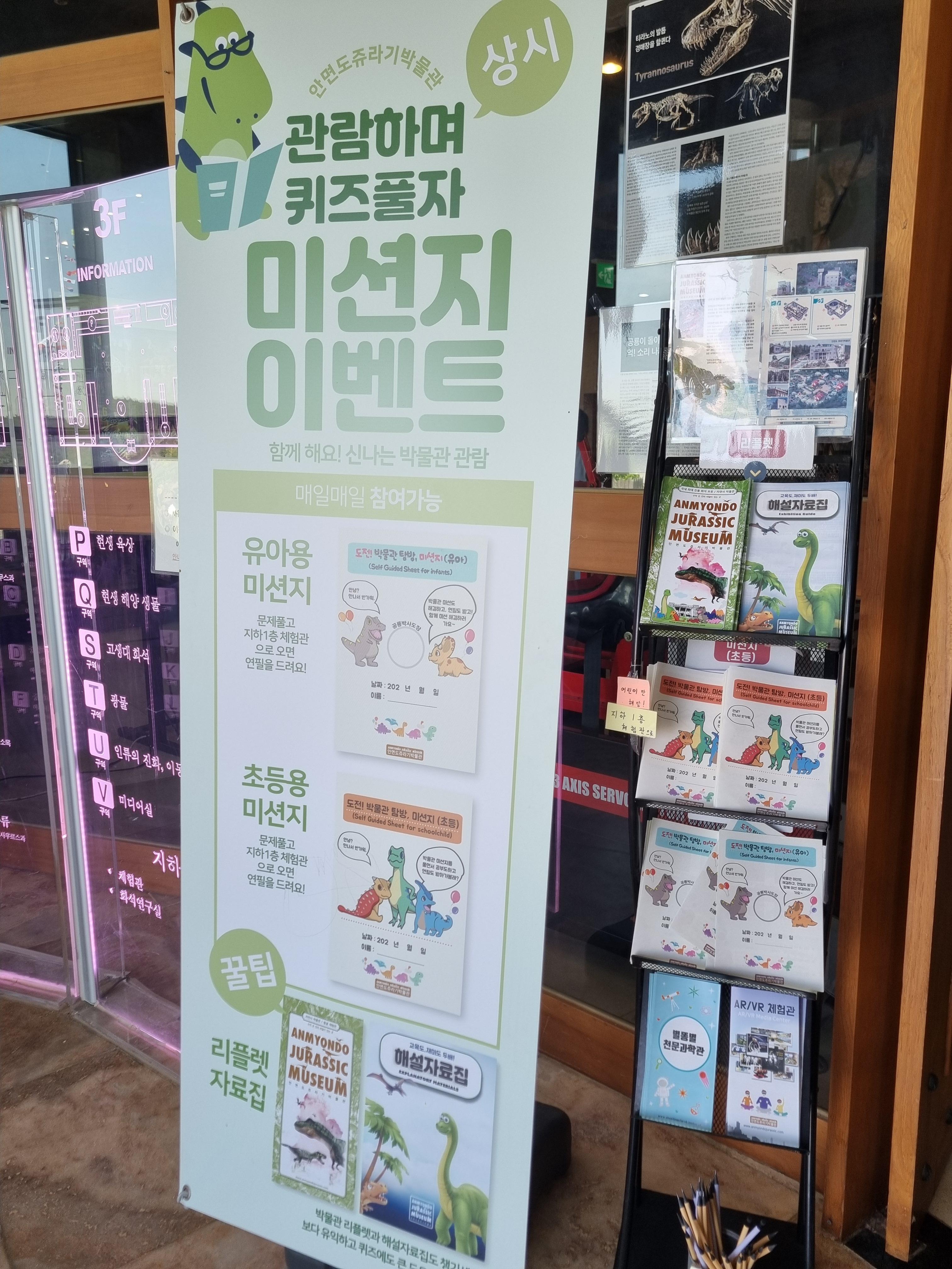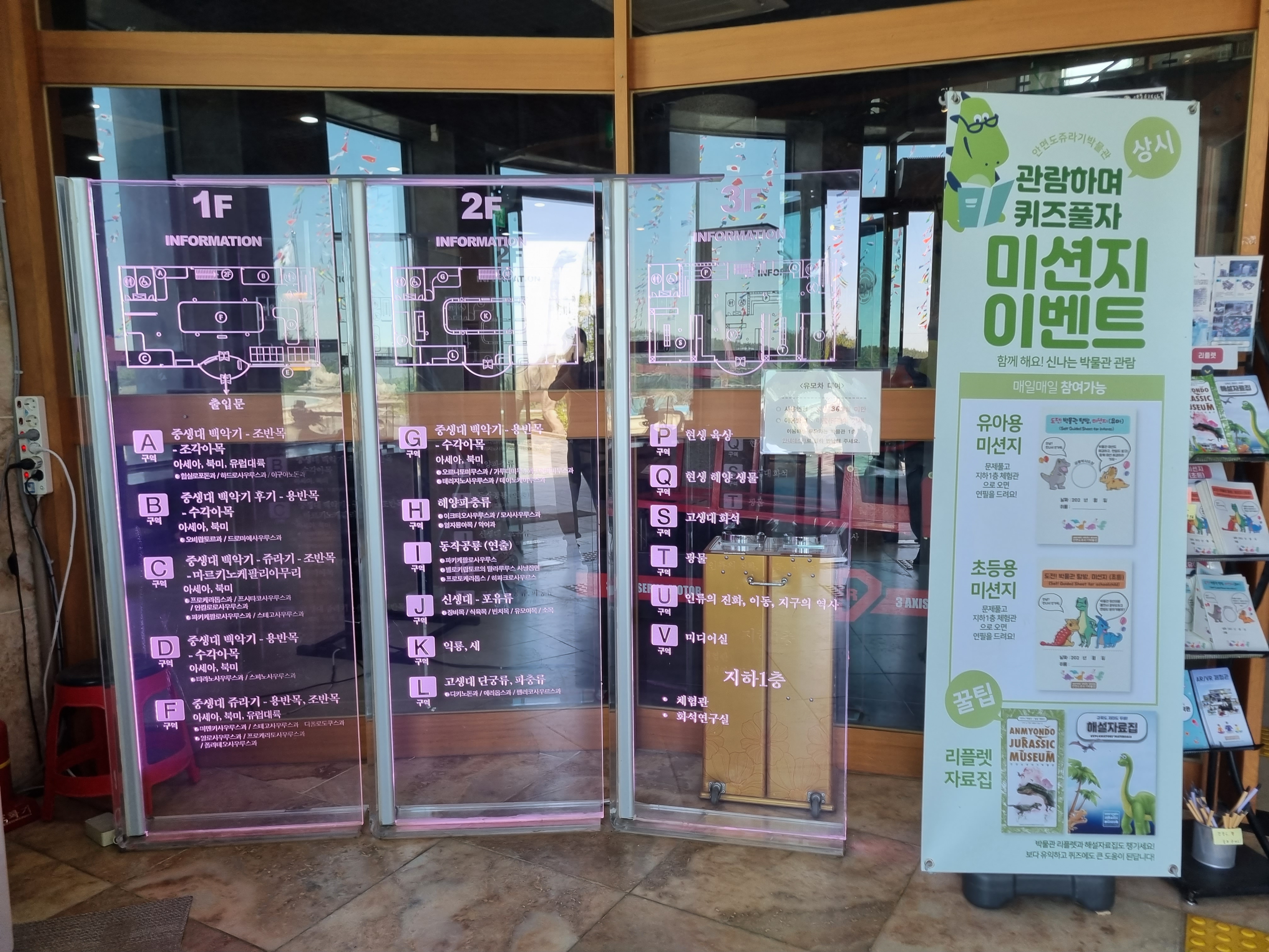 박물관 입구 1층에 들어서니, 층별 안내도가 있습니다. 그리고 그 옆에 미션지 이벤트가 소개가 있어 유아용 미션지를 한 장 챙겼습니다. 미션지 덕분에 제가 공룡에 대한 지식이 늘어났답니다.