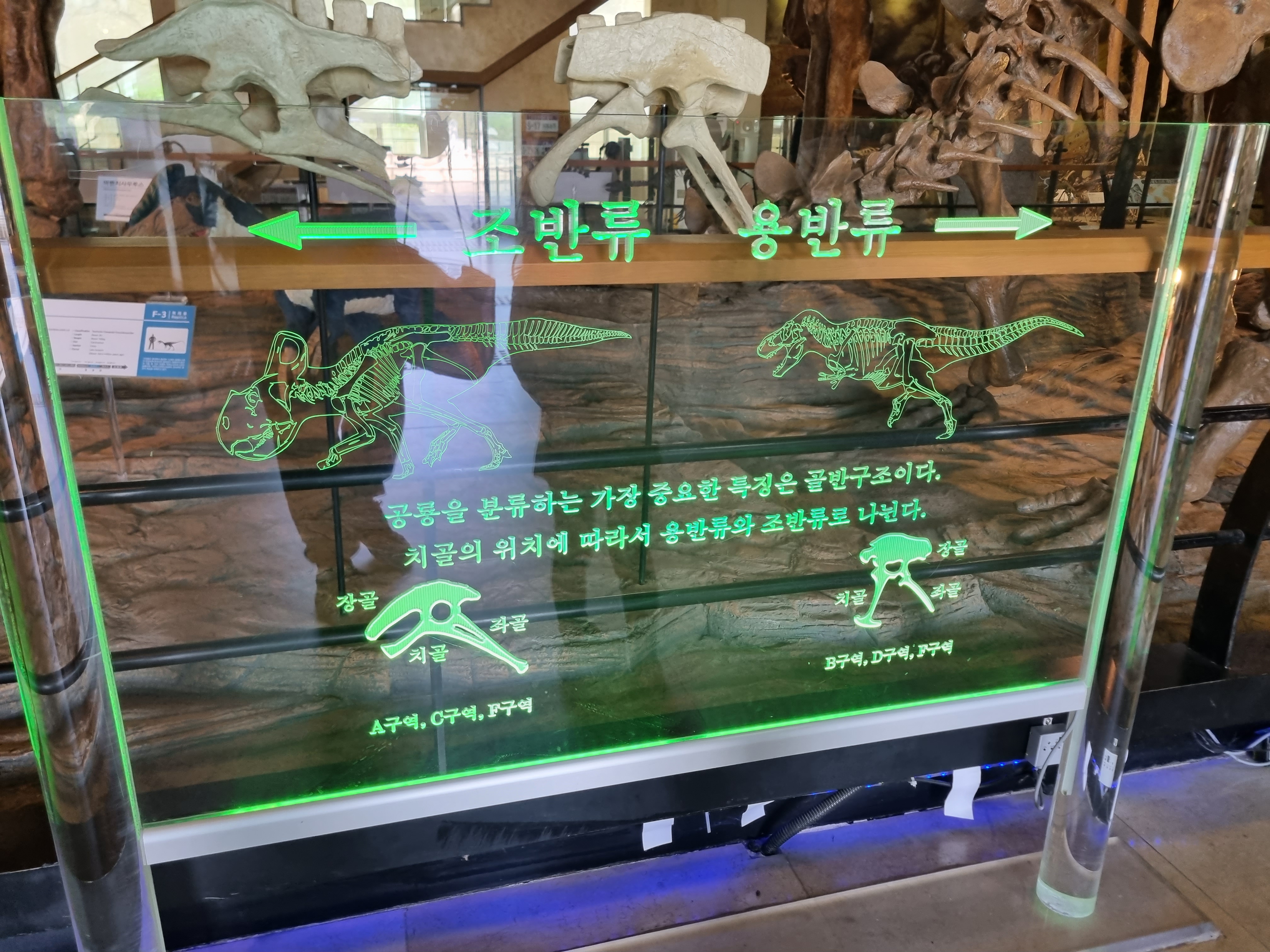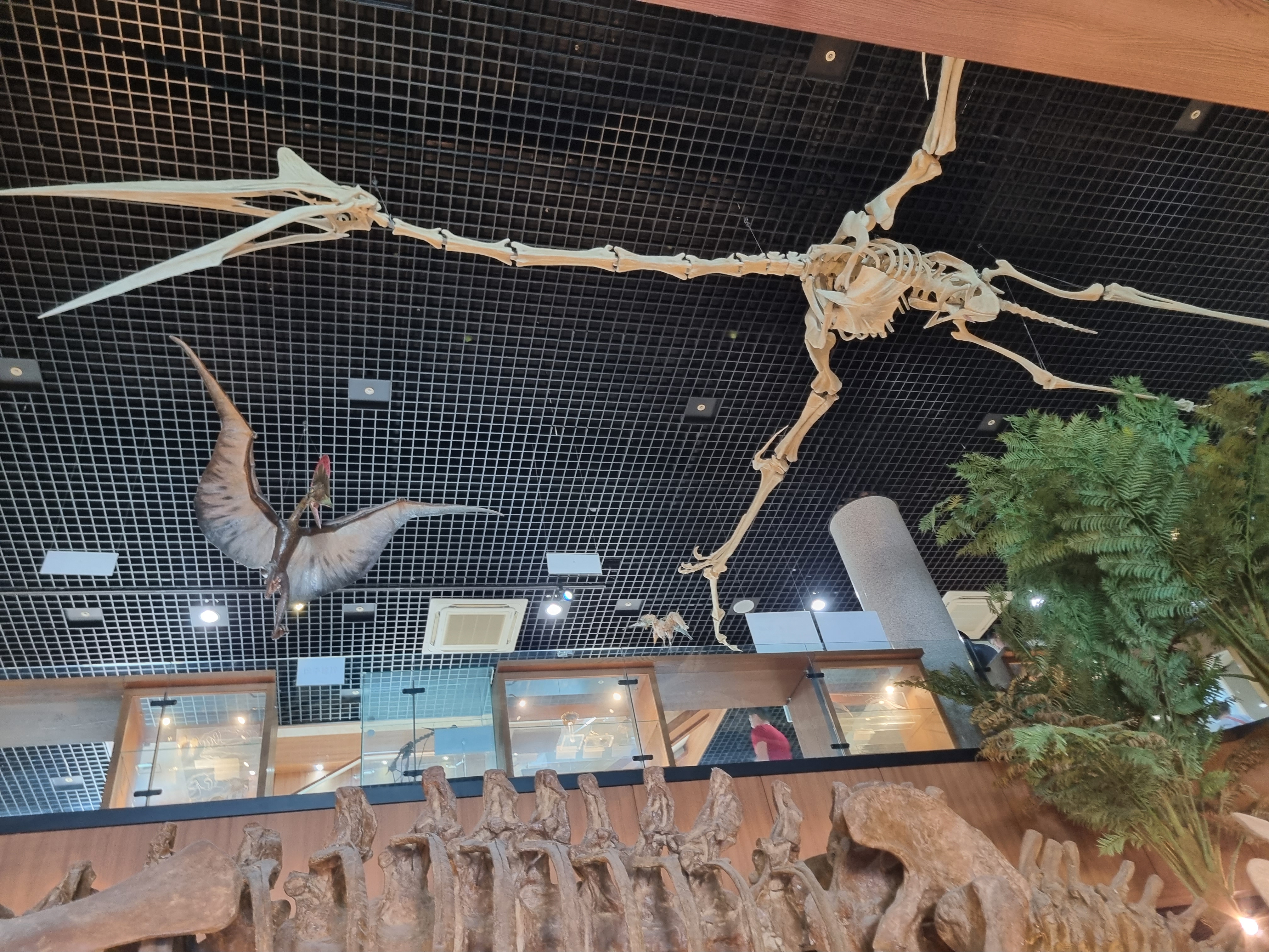 1층 홀에 전시된 공룡 뼈 사이로 골반구조를 가지고 조반류와 용반류를 나눈다고 설명이 되어 있네요. 문제에도 있었지만 공룡을 구분하는 특징이 골반구조인 건 이번에 처음 배웠습니다. 1층에서부터 보이던 익룡은 3층에 가면 더욱 잘 보이더군요.