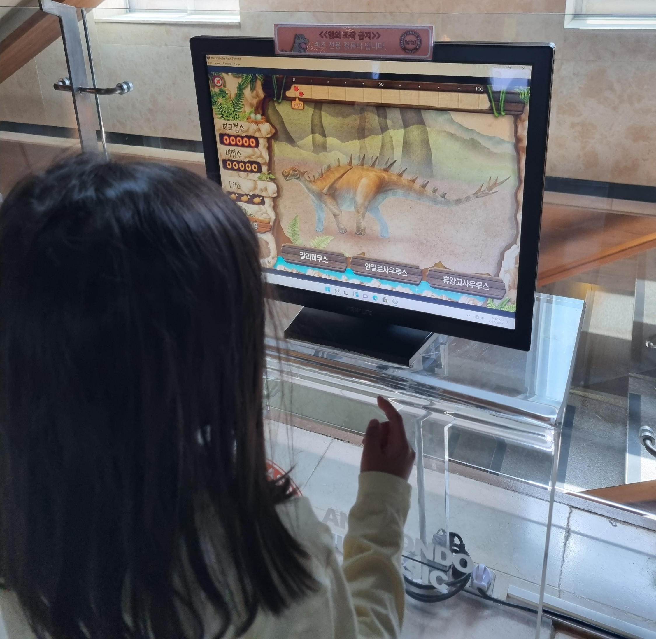 아이가 가장 좋아한 공간은 역시 의외의 공간입니다. 공룡 이름 맞추는 게임이 있었는데, 마구 찍고, 틀리면서도 계속하더군요. 흥미를 가진 다른 곳은 영상관입니다. 빨간 모자 이야기의 주인공이 공룡인데 공룡인형으로 애니메이션을 만들었더라고요. 한 편 다 보고도 나가려 하지 않아서 곤란했었습니다.
