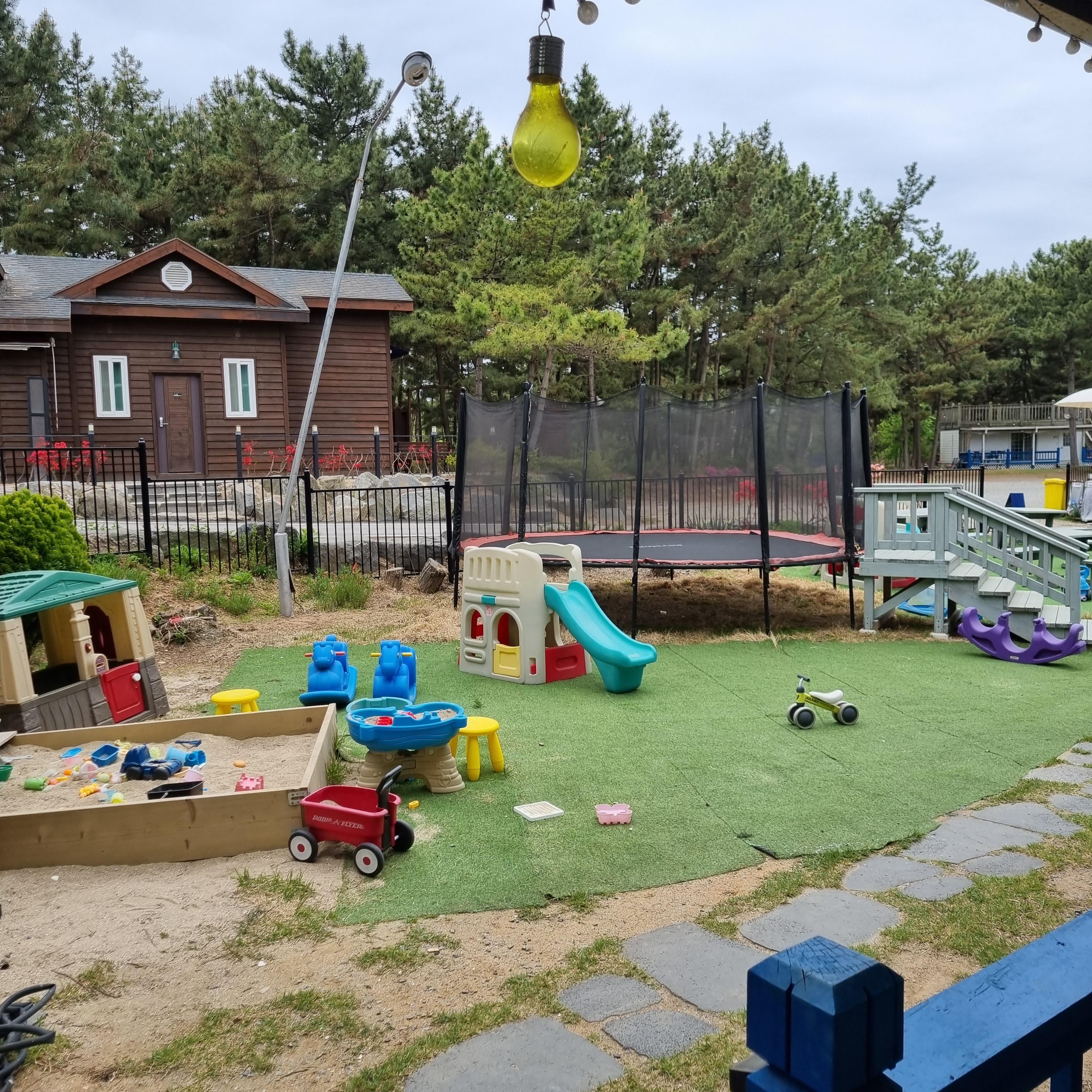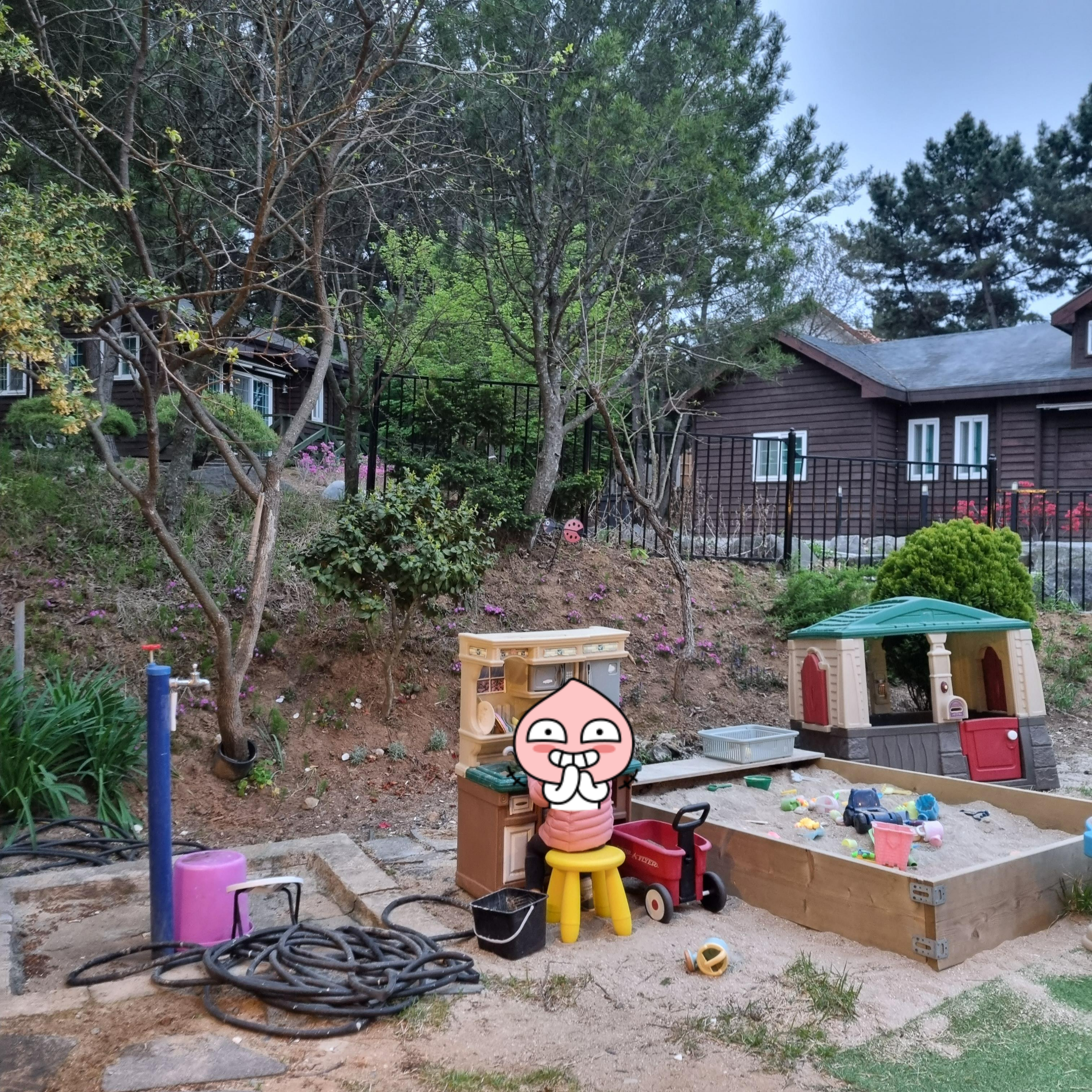 저희가 묵었던 모모룸 앞에 위치한 놀이공간입니다. 모래 놀이터가 있고, 미끄럼틀, 트럼폴린, 각종 탈 수 있는 장난감이 있습니다. 아이가 이 공간을 좋아해서 이틀 동안 아침, 저녁으로 놀았답니다.