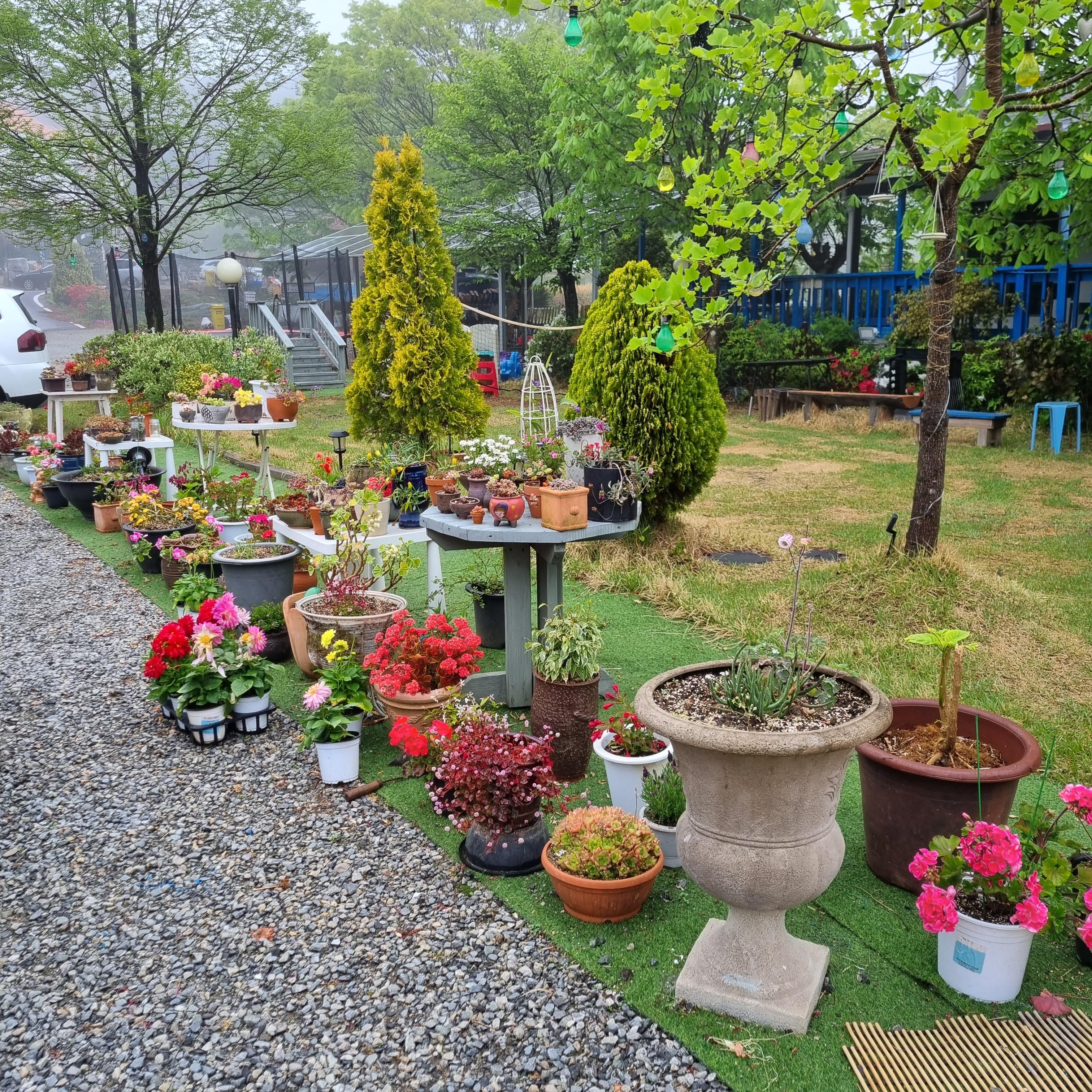 토요일 아침에 둘러본 펜션 곳곳입니다. 예쁜 꽃과 식물로 펜션 곳곳을 꾸며두셨더라고요. 부지런히 가꾸는 손길이 느껴졌습니다.