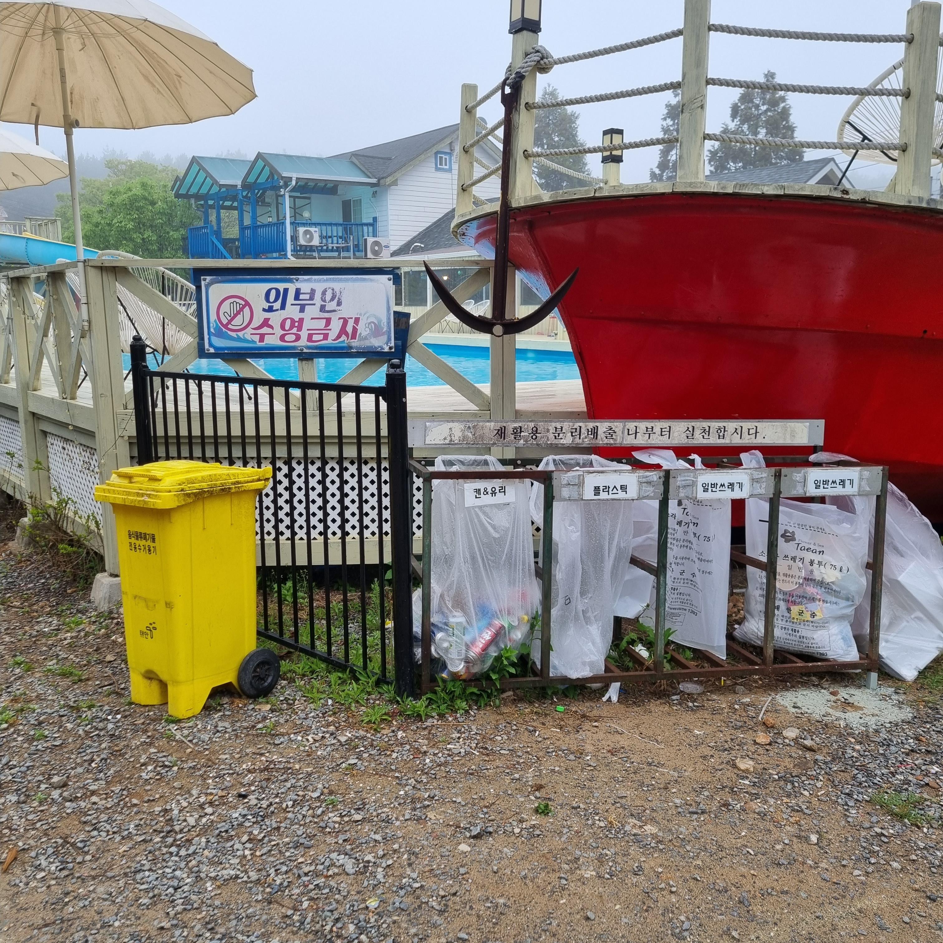 수영장 옆 쪽으로 쓰레기 버리는 공간이 있었습니다. 숙소에서 가지고 나와서 버리기 편리했어요.