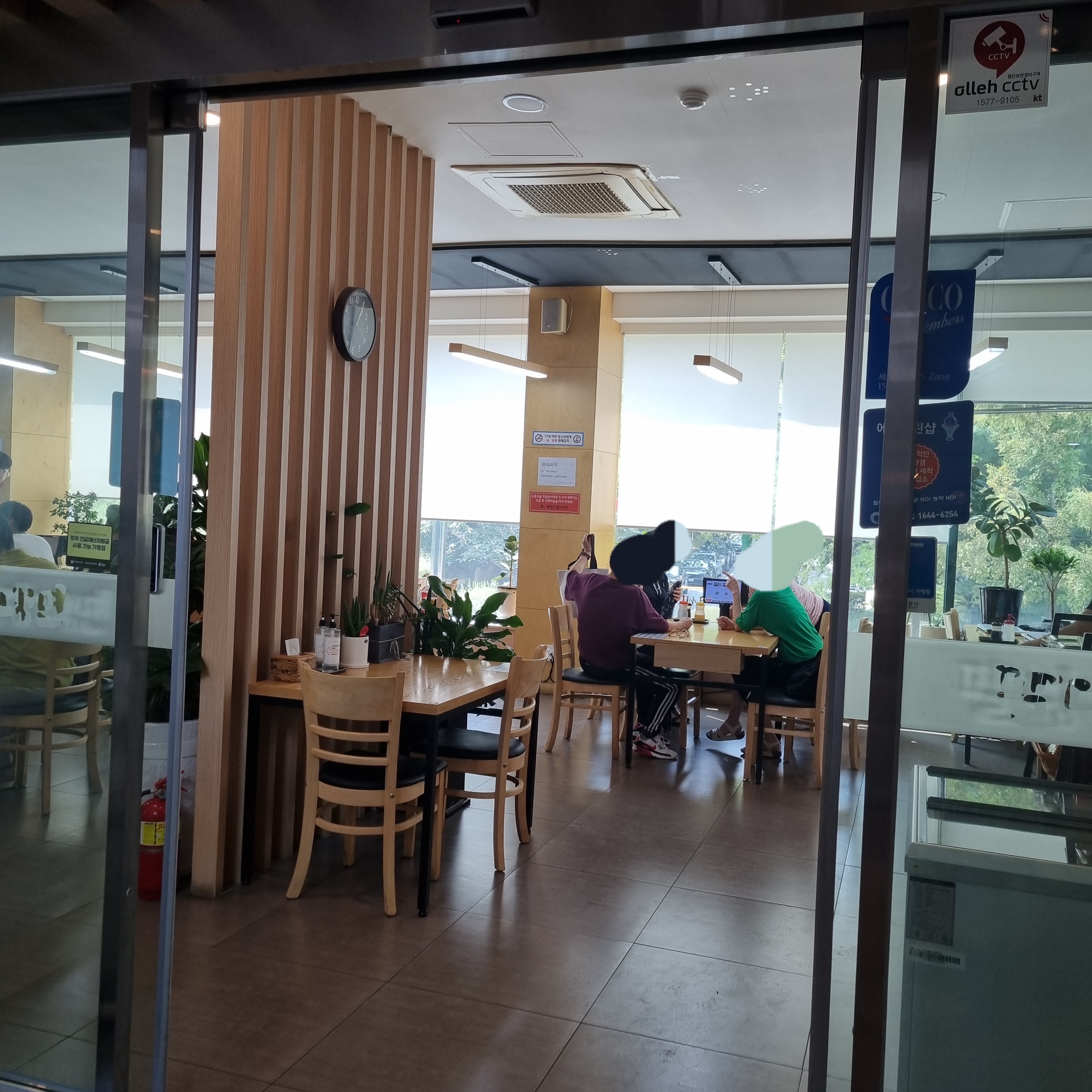 매장은 넓은 편이었는데 평일 점심에도 사람들이 곳곳에 있어서 사진 찍기가 어려웠습니다. 출입구 왼쪽으로도 테이블이 있고 오른쪽에도 있었어요.