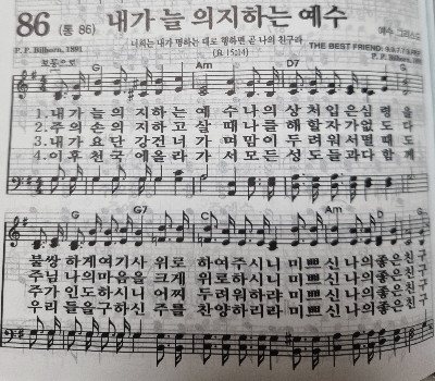 내가 늘 의지하는 예수 나의 상처 입은 심령을 불쌍하게 여기사 위로 하여 주시니 미쁘신 나의 좋은 친구