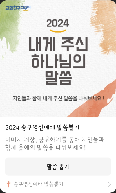 이미지 저장, 공유하기를 통해 지인들과 함께 올해의 말씀을 나눠보세요!
