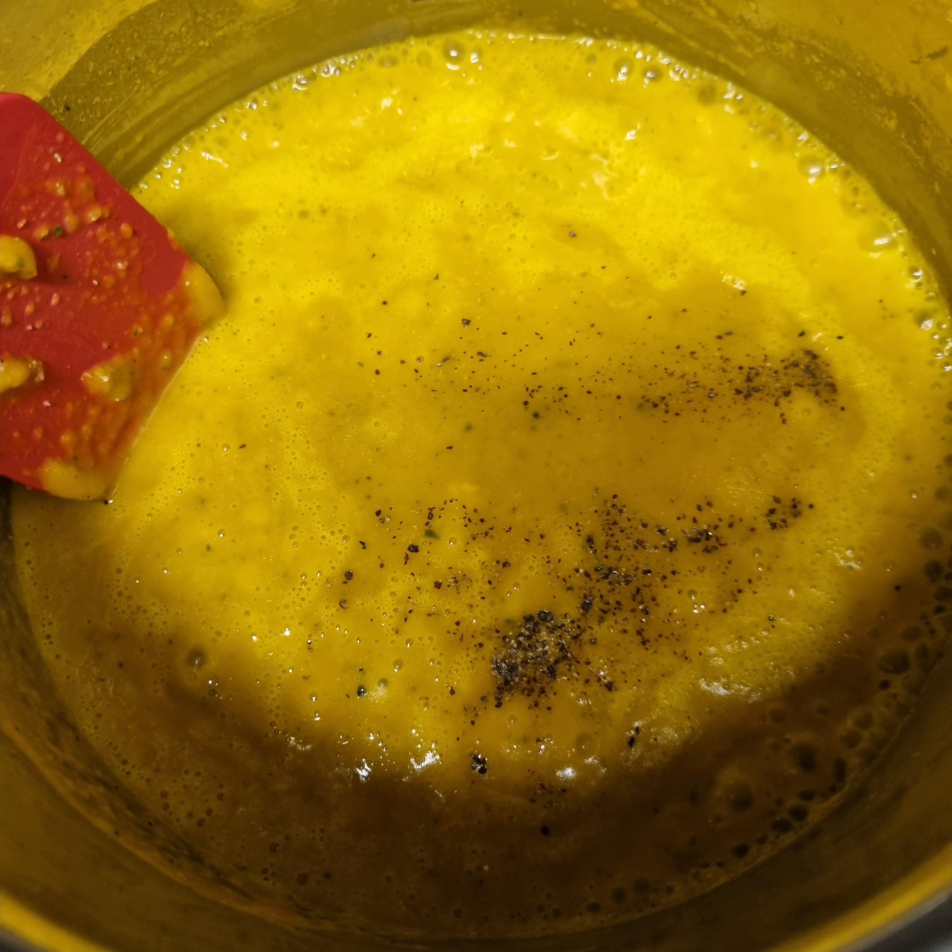소금과 후추, 단호박도 필요해요. 단호박죽 재료로 갈아둔 단호박이에요.